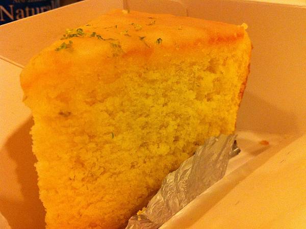 對檸檬蛋糕的印象一直停留在傳統麵包店裡那種橢圓形,上面覆著一層檸檬白巧克力的甜膩蛋糕。本來一向對檸檬蛋糕沒甚麼好感的我,在吃過法朋的檸檬蛋糕之後卻意外地著迷。這款檸檬蛋糕屬於常溫蛋糕,蛋糕本體類似奶油磅蛋糕但較為細緻綿密,表層裹著撒檸檬皮屑的白色糖霜,味道清新自然。一叉子送進嘴裡,交織著檸檬的酸香、奶油的奶香與雞蛋的蛋香。恰到好處的甜度與酸香帶給這個蛋糕無窮的魅力,無怪乎此蛋糕為法朋的人氣商品之一。