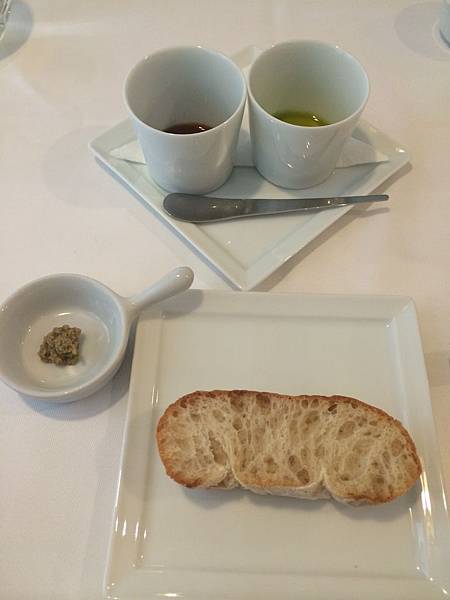 O&CO的橄欖油、Balsamic酒醋和法式芥末醬佐自家餐廳製麵包片。