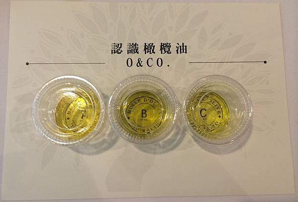 O&CO這次的課程活動不只品餐,還教我們品油,此次選用的三種橄欖油,味道、顏色、濃度都不盡相同。用手溫熱後芳香更甚以往,有青草香也有芭樂香,一口吸入口中,喉頭漸有細微的嗆辣,嗯~是橄欖多酚。橄欖油中含的橄欖多酚,能預防人體脂肪氧化並抑制自由基的形成,不但可減少罹癌的機率,還能預防心血管疾病的產生,是非常健康的油品。O&CO的油品由專業的品油師每年挑選符合標準的莊園橄欖榨製而成,有一定的水準,品質非常好,橄欖油的氣味芬芳清香,一直都是我十分喜愛的油品。另外,他們家的橄欖護手霜,滋潤力很好且持久,吸收很快,也不會有甚麼油膩感,對我這個受不了手乾的人來說,實在非常好用,大推薦。